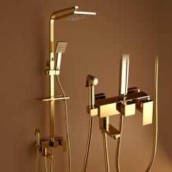 Алуминиева етажерка за баня в златно, тройна, триъгълна R18g