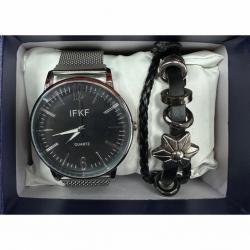 Мъжки комплект - кварцов часовник с метална верижка и стилна гривна в ..