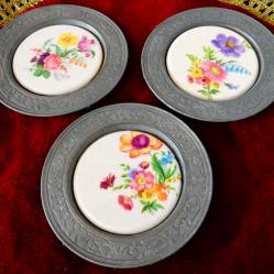 Калаена чиния, пано с пъстри цветя, релеф.