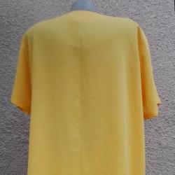 Свежа портокалово-жълта туника. С тънки подплънки за по-елегантна визия и седим облечени копченца /+1 резерва/. Отпред е с дълбока цепка. В страни също има цепки. Етикетчето на врата е отрязано за да не дразни кожата, но туниката е производство на „Canda” и отговаря на размер 3XL. Полиестерна материя. Точни мерки: Дължина -82см. шир. при раменете 2х46 см. шир. при подмишниците 2х64 см. шир. при ханша 2х64 см. Ръкав от рамото – 24 см. Забележка:. На външен вид е като нова, но има две, много трудно забележими, издърпани нишки на кръста в лявата част. Показано е на последната снимка в близък кадър. Цената е съобразена с дефекта Още мои дрехи с големи размери в блога ми: https: //modamaxi. wordpress. com/ |