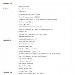 www. ielectric. bg + 2 ГОДИНИ ГАРАНЦИЯ тел: 0894 65 02 65 Viber/WhatsApp Характеристики: • МАРКА BOYUEDA • МОДЕЛ S5 • БАТЕРИЯ BMS литиевойонна 60V 38AH • МОТОР 6000W безчетков (2x3000W) • ГУМИ офроуд надуваеми (11 инча) • СПИРАЧКИ двойни дискови хидравлични • ОКАЧВАНЕ двойно • СВЕТЛИНИ лед фар, лед стоп, лед ленти и мигачи • КЛАКСОН • СЕДАЛКА с опция за премахване • ОТКЛЮЧВАНЕ чрез пин код и NFC • БЕЗЖИЧНА ВРЪЗКА чрез bluetooth • СГЪВАЕМА • МАКСИМАЛЕН ПРОБЕГ до 120 км • МАКСИМАЛНА СКОРОСТ до 85 км/ч • ТОВАРОНОСИМОСТ до 200 кг • ТЕГЛО 45 кг Предимства: • ПРЕДВАРИТЕЛЕН тестов контрол • СЕРВИЗНО обслужване • РЕЗЕРВНИ части • ПРЕГЛЕД И ТЕСТ на пратката Съдържание на комплекта: 1х Електрическа тротинетка 1х Зарядно устройство 1х Инструменти 1х Упътване на български език 1х Гаранционна карта |