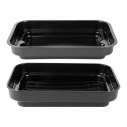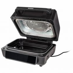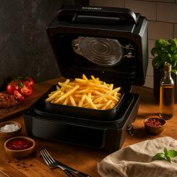 Капацитет: 2,5 литра (за ~1 кг картофи); Методи на приготвяне: пържене в дълбока мазнина, без мазнина, размразяване; Мощност: 2460 W; Температурен диапазон: 40 – 220 °C; Таймер: от 1 минута до 60 минути; Оборудване: грил плоча, тава, вътрешен съд, капак, резервоар за мазнина; Покритие: незалепващо; Цвят: черен; Форма: правоъгълна; Материал: пластмаса; Размери: 44 см (ширина) × 31 см (височина) × 40 см (дълбочина); Управление: тъчскрийн дисплей с готови програми; Гаранция: 12 месеца. |