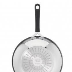 Диаметър: 28 см; Материал на тялото: Неръждаема стомана; Антипригарно покритие: Titanium 2X; Съвместимост: Газови, електрически, керамични и индукционни котлони; Индикатор на температура: Thermo-Signal; Дръжка: Занитена неръждаема стомана, устойчива на топлина; Почистване: Подходящ за миялна машина; |
