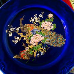 Чиния баварски порцелан, злато, кобалт, пауни.