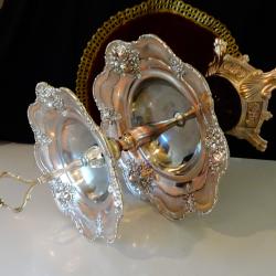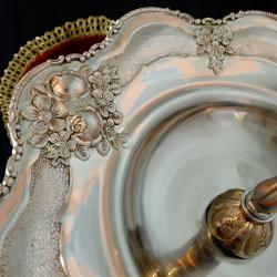 Посребрен поднос, плато на два етажа 47 см., 1.9 кг., рози, барок.