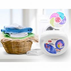 Брой капсули в опаковка: 30 броя; Функции: Почистване, дезинфекция, ароматизиране, омекотяване, защита на тъканите, премахване на бактерии и акари; Тип пране: Цветно и бяло; Дозировка: 1 капсула за стандартно пране, 2 капсули за по-голямо количество пране; Състав: Активни почистващи агенти, кислородна технология, омекотители; Форма: Разтворими капсули. |