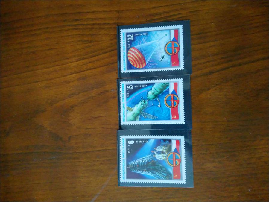 Серия от 3 пощенски марки от СССР 1978 г. Международни полети в Космоса. Съветско - чехословашси полет.