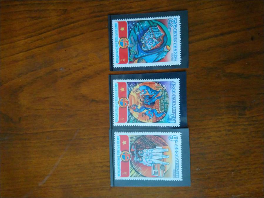 Серия от 3 пощенски марки от СССР 1980 г. Международни полети в Космоса. Съветско - виетнамски полет.