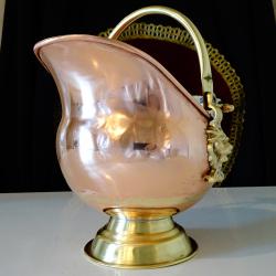 Меден съд за въглища, лъвски глави, чиста червена мед.