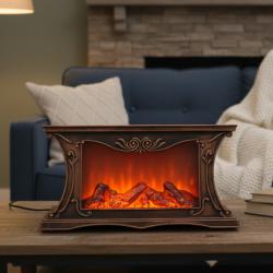 Продукт: LED Fireplace Lantern (LED фенер-камина); Тип: Декоративна камина-лампа с LED ефект на пламък/тлеещи въглени; Размер: 43 × 10.5 × 23.5 см; Корпус/цвят: Ретро дизайн с античен бронзов завършек; Монтаж: Свободно стояща, преносима; Предназначение: Интериорна декорация (дом, офис, витрина, събития); Визуален ефект: Имитация на огън с „жарава“ и декоративни „дърва/камъни“; Гаранция: 12 месеца. |