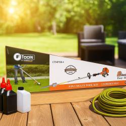 Марка / Серия: IF Tools (Design in Germany); Модел: CTMP520-4; Тип: 8-в-1 мултифункционален комплект за двор; Двигател: 2-тактов, 52 cc (изписано на опаковката: 2 STROKE 52CC); Стартиране: Easy-start; Сертификати: CE; Основни приставки: глава с корда за трева; четирилопатен нож за гъста растителност; 40-зъбен диск от сплав за трънак и изсъхнали плевели; полурезачка/кастрачка за клони; ножица за жив плет; удължител за работа на височина; Препоръчителни ЛПС (показани на опаковката): защитни очила, антифони, ръкавици; Продукт: 8-в-1 мултифункционален комплект; Двигател: Двутактов, 52 куб. см; Гаранция: 12 месеца. |