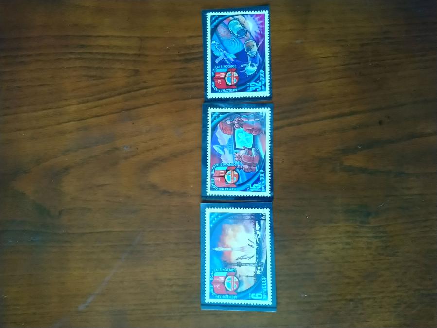 Серия от 3 пощенски марки от СССР 1981 г. Съветско - монголски полет.