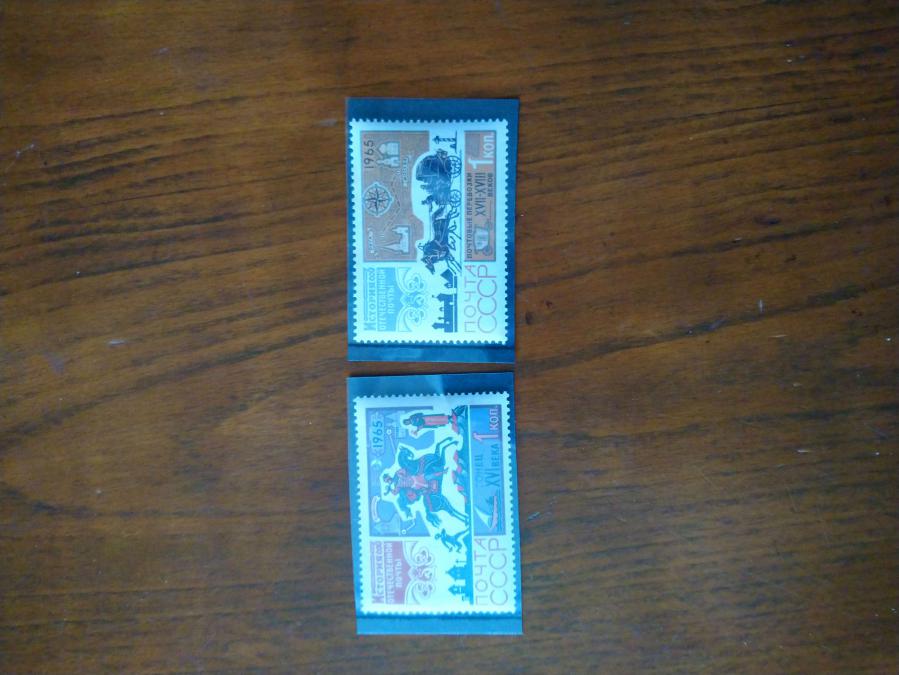 Серия от 2 пощенски марки от СССР 1965 г. История на руската поща.