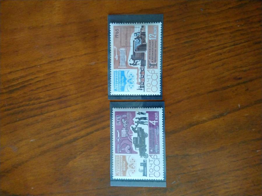 Серия от 2 пощенски марки от СССР 1965 г. История на руската поща.