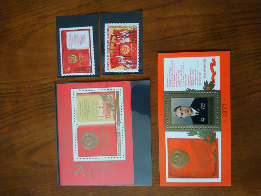 Серия от 2 пощенски марки плюс 2 големи марки блок от СССР 1977 г. Нова конституция.