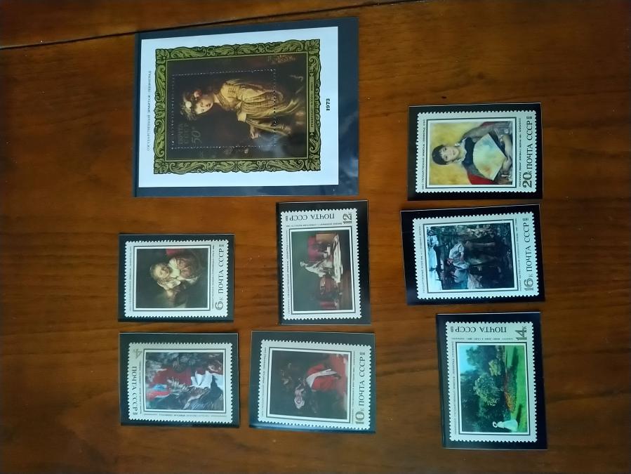 Серия от 7 пощенски марки плюс голяма марка блок от СССР 1974 г. Чужди картини в съветските музеи