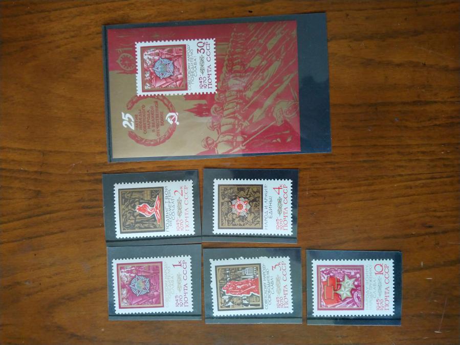 Серия от 5 пощенски марки плюс голяма марка блок от СССР 1970 г. 25 години от победата във Втората световна война.
