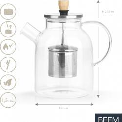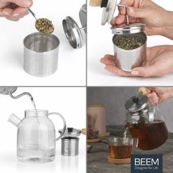 Стъклена кана за чай Beem с вграден цедка-филтър 1 литър, боросилика