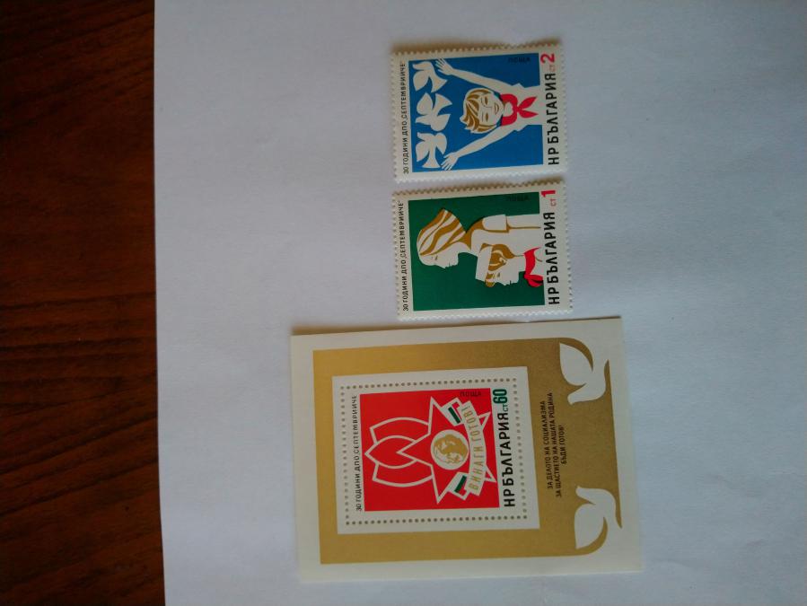 Серия от 2 пощенски марки плюс голяма марка блок от България 1974 г.