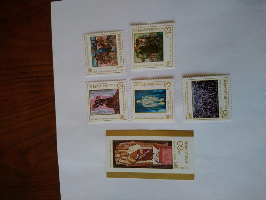Серия от 5 пощенски марки плюс голяма марка блок от България 1976 г. 100 години от Освобождението.