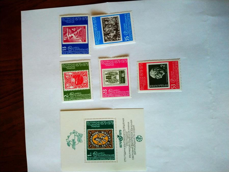 Серия от 5 пощенски марки плюс голяма марка блок от България 1978 г. Международна филателна изложба " Филасердика -79".