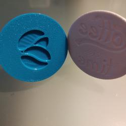 Тампер за кафе с надпис или картинка: диаметър 5,5 см, височина 5 см. Материал: подсилена пластмаса - устойчива на удър и добра термична стабилност. Предлагат се и в други цветове.