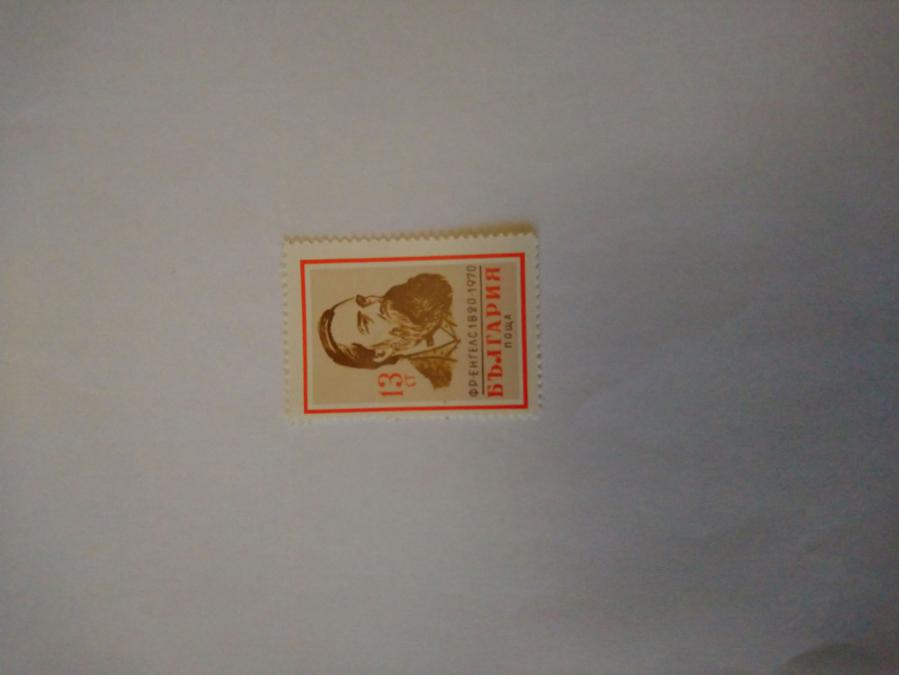 Пощенска марка от България 1970 г. 150 години от рождението на Фридрих Енгелс.