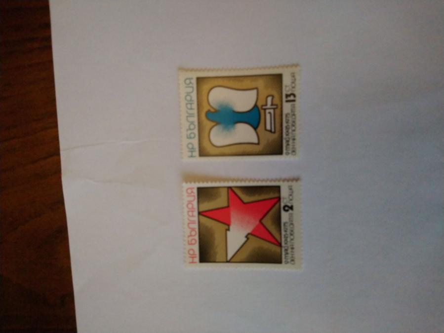 Серия от 2 пощенски марки от България 1975 г. 9-ти май ден на победата. 30 години от победата.