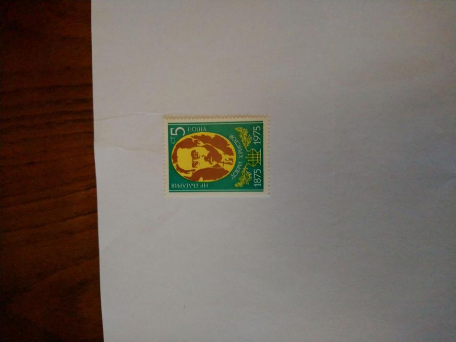 Пощенска марка от българия от 1975 г. 100 години от рождението на Добри Христов.