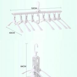 Това е 8 в 1 магическа закачалка за дрехи, многослойна, сгъваема, от пластмаса, неплъзгаща се, която се върти на 360 градуса и ще ви спести много място при съхранението на дрехите ви, а може да бъде използвана и като сушилник. Закачалката е изработена в бял цвят, който е съвместим с всеки вид интериорен дизайн и гардероби, без да създава дисбаланс.