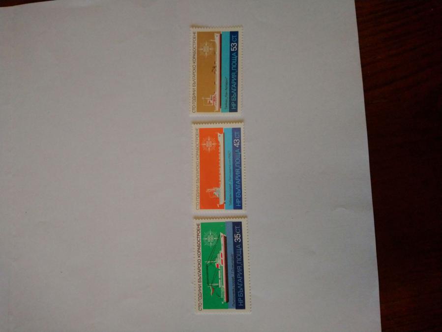 Серия от 3 пощенски марки от България 1981 г. 100 години българско корабостроене.