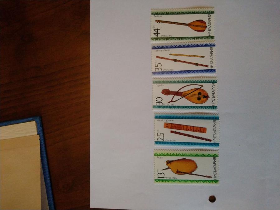 Серия от 5 пощенски марки от България 1982 г. Народни музикални инструменти.