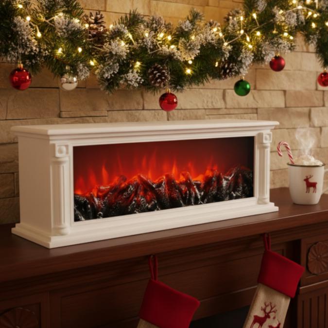 Тип: декоративна LED камина-лампа (визуален ефект на жар; без отопление); Захранване: USB 5V; включен USB кабел (може да се използва с адаптер, лаптоп или power bank); Осветление: енергийно ефективни LED диоди; Управление: страничен бутон ON/OFF; Монтаж и употреба: свободно стояща; за поставяне на рафт, комод или конзола; „включваш и работи“; Материал на корпуса: висококачествена пластмаса ABS с декоративни профили; Размери: 102 × 14 × 29 см; Цвят: Бял, кафяв; Поддръжка: сухо или леко влажно почистване; без консумативи; Приложения: дом, офис, ресторант/кафе, коледен/празничен декор, фотокът, сценография, витрина; Гаранция: 12 месеца. |