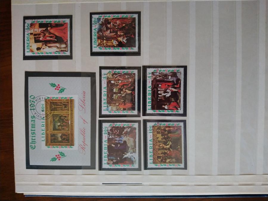 Серия от 6 пощенски марки плюс голяма марка блок от Либерия 1970 г. Рождество Христово.
