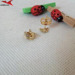 http: //www. avisbiju. com/ 2141770 Цена: 8.50лв. / €4.35 Обеци със златно покритие: • Продукт: обеци • Състояние: ново • Материал: екологична мед 14К позлатено • Камъни: Synthetic CZ • Размер на обеците – 7*6 mm • Грамаж: 0.8 гр. • Тип закопчаване: на винт |