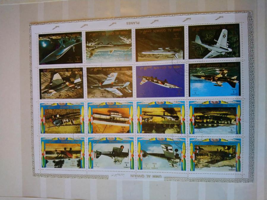 Серия от 16 пощенски марки в блок от Ум ал-Куйн (ОАЕ) 1972 г. Самолети.