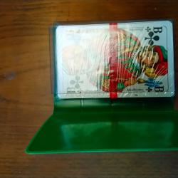Карти за игра в микро папка. Габаритни размери 66*98*15 мм..броят на картите в тестето 32. Произход неизвестен 2003 г. Картите са във фабрична затворена опаковка. Налични са няколко броя. Цената е за 1 брой. |