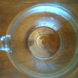 Гояма стъклена кана. Произход България около 1995 г. Гладка повърхност на каната. Габаритни размери на каната 180*140*210 мм..Диаметър на основата ф100 мм..Размери на гърлото 120*104 мм..