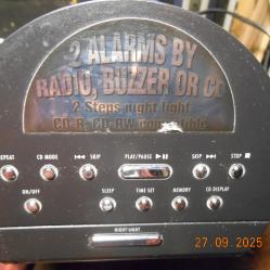 Добър външен вид 2 аларми 2 говорителя Радио часовника работи без диска В долната част има нощна лампа на 2 нива - работеща Внос Гърция |