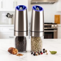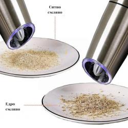 Ако ти е омръзнало да въртиш ръчни мелнички и да разсипваш подправките, тази автоматична електрическа мелничка от неръждаема стомана решава проблема само с едно натискане на бутон. Работи с 6 ААА батерии, има регулируемо смилане – от ситно до едро – и вградена синя LED светлина за перфектна видимост при всякакво осветление. Съчетава модерен инокс дизайн с прозрачен контейнер за лесно наблюдение на съдържанието и е подходяща за сол, пипер или хималайска сол. Компактна, стилна и удобна – тя превръща всяко готвене в удоволствие и придава професионален щрих на масата.