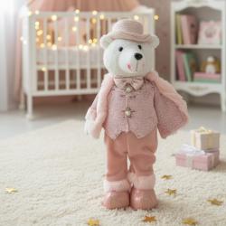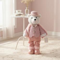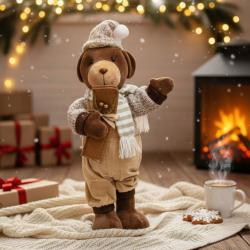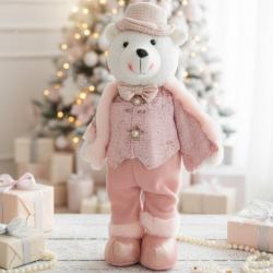 Тип продукт: Декоративна стояща плюшена фигура – мече (сезонна/целогодишна украса); Материали: Плюш, текстил (кадифе, трико, плетиво), декоративни елементи (перли/камбанки), вътрешно пълнежно влакно; Конструкция: Меко тяло; утежнена основа в ботушките за стабилност върху равна повърхност; Цветови варианти: Розов / Кафяв; Приблизителни размери: Розов - 30/ Кафяв - 40см; Поддръжка: Локално почистване с влажна кърпа; не се препоръчва машинно пране; Приложение: Домашна декорация, офис, витрина, подарък, фотокът; Сезонност: Идеално за Коледа/зима; достатъчно неутрално за целогодишен уют. |