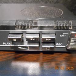 Ретро диктофон и работи безпроблемно Задоволителен външен вид - леки липси на хром около микрофона и бутоните. Има система за астивиране на записа VAS - има шум записва няма шум спира и чака - има и настройка на шума - по чусвителен микрофон или не Работи със стандартна касета и скорост Има си и броч на лентата както и вграден високоговорител Внос Германия |