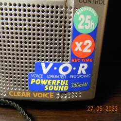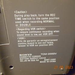 Работи със стандартна касета. Система за пестене на батериите V. O. R. - записът тръгва когато има шум звук или говор Почти в идеален вид - лека забележка в задната част до батериите /снимано/ Записът е силен и чист от вградения говорител в предната част. Модела се води шпионски.... слагаш го под леглото на жена си и ще чуеш с кого си говори по телефона...- примерно когато те няма внос Германия /продава се без батерии Specifications • Recording System: 2 Track, 1 Channel, Standard Cassette • Frequency Response: 250-6,300Hz • Speaker: 2" (50mm) dia. • Speaker Output: 350mW • Inputs: DC-In jack 3V, External Microphone • Outputs: Earphone (mini jack) • Power Requirements: DC 3V, "AA" x 2 • Battery Life* (Approx.): Rec/Play: 25 Hours Continuous Recording w/Sony Alkaline Batteries (optional) • LED: w/Battery Indicator • Built-In Mic: Yes • Color: Silver • Dimensions (WxHxD): 3-3?8" x 4-1?2" x 1-3?8" (86.9 x 116.3 x 36.5mm) • Weight: 6 oz (169g) |