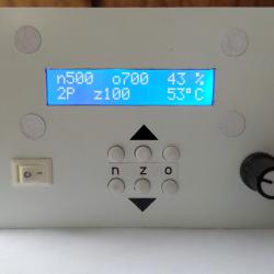 Цифров контролер за апарати с ЕСЗ (електросъпротивително заваряване) с мощности 1kW - 50kW (и повече), със захранващи напрежения 220VAC или 380VAC (двуфазно). Работещи с пневматично притискане на детайлите, с водно охлаждане, с тиристорно или симисторно управление на трансформатора. Контролера може да управлява и апарати без пневматика и водно охлаждане, но работи задължително с тиристори или симистор за управление на трансформатора. Силовата и управляващата части са галванично разделени с оптрони. Схемата е с верига за откриване на нулевото пресичане (Zero cross detect). Включва и изключва трансформатора само при нулево пресичане на фазата (фазите), за да се избегне сврхнатоварване в ел. мрежата и апарата. Това гарантира и еднакво качество на заварките при висока цикличност. Разполага с двуимпулсно заваряване. Възможност за включване и изключване на първия импулс. Първият импулс е ’’подгряващ’’. Целта му е да създаде добър контакт между детайлите и след това вторият импулс да направи крайното заваряване. Директно управлява пневматичен 12VDC магнит вентил или 220VАС такъв чрез SSR - полупроводниково реле. Управлява ел. помпа за охлаждаща течност на 220V чрез SSR - полупроводниково реле или вентилатор на 12VDC - директно от контролера. Следи температурата и при проблем с охлаждането ще подаде звуков сигнал, както и да спре заваряването до нормализиране на температурата (отстраняване на проблема). Улеснен и бърз достъп за промяна на всеки от параметрите, без сложни менюта и подменюта. Всички показания се изписват на LCD дисплей: * Мощност (от 30 до 100%) * Време на притискане (n) * Време на заваряване (z) * Време за охлаждане на детайлите (o) * Включени един или два импулси (1P, 2P) * Температура Мощността и времената са с плавно регулиране. Запаметява последните настройки в енергонезависима памет. Гаранция 12 месеца. Гаранционен и извънгаранционен сервиз. Комплекта включва: Контролер; Импулсно захранване 12VDC; Платка за управлние на силови тиристори - за мощни апарати или SSR - полупроводниково реле за апарати с мощност 1- 2kW; Повече информация и въпроси на посоченият тел. номер. . |