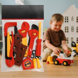 Ако детето ти обича да разглобява и „помага на тати“, но търсиш безопасен начин да го включиш в играта – този детски комплект инструменти е идеалното решение! Създаден за малки майстори над 3 години, той развива сръчност, въображение и концентрация чрез реалистична, но напълно безопасна игра. Комплектът включва отвертка, гаечен ключ, трион, рулетка, болтове, гайки и имитация на дървени летви – всичко нужно за забавна детска работилница. Изработен е от лека, нетоксична пластмаса без остри ръбове. Ярки цветове, реалистичен дизайн и удобна блистерна опаковка. Размер: 19×28×3 см. Подходящ за деца 3+