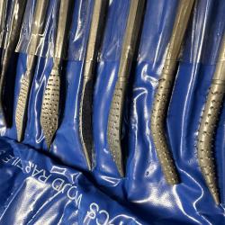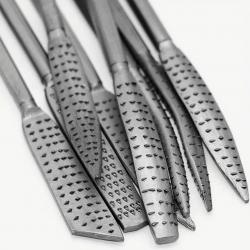 Двустранни раш пили за дърво, пластмаса и други меки материали. Изработени от HSS стомана Дължина: 19см Ширина на работната част приблизително 1 см Диаметър на място за захват 5,4мм Цената е за комплект 8бр |