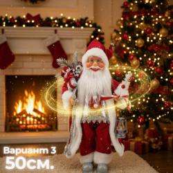 Вариант 1 – Дядо Коледа в сиво Вариант 2 – Дядо Коледа в сребристо Вариант 3 – Класически червен Дядо Коледа Вариант 4 – Златен Дядо Коледа Вариант 5 – Луксозен Дядо Коледа в златно Вариант 6 – Червен Дядо Коледа с фенер Конструкция: Стабилна стойка за изправено поставяне Подходящ за: Интериорна употреба – дом, офис, хотел, заведение, магазин Изработка: Ръчна, с висока устойчивост и запазване на форма Височина: 50 см / 70 см / 90 см Материали: Текстил, пластмаса, синтетични влакна |