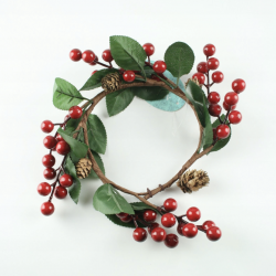 Декоративен венец с офика и шишарки. Нека ви представим нашия Декоративен венец с офика и шишарки - символ на простота и елегантност. Този венец с изчист дизайн представлява идеалния начин да добавите топлина и красота във вашия дом през Коледните празници. Параметри: Ширина: приблизително 23 см Ширина в центъра: 12 см Височина: приблизително 5 см. Коледна украса с червени топки, листа и шишарки. Украсата може да се използва по време на празниците и през цялата година. Перфектен елемент за коледна и есенна украса. Перфектен за врата, прозорец или като декорация на свещ. Изглежда красиво като самостоятелна декорация.