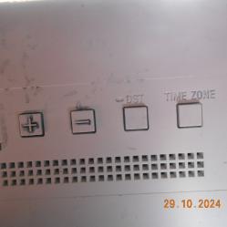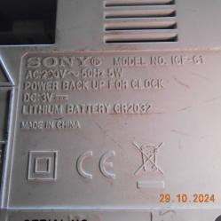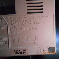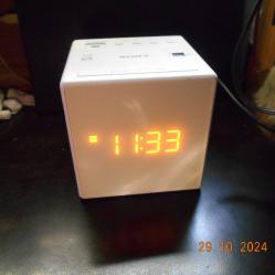 Един модел на Сони от 2014г Всичко по часовника работи - 2 аларми аналогов тунер Има дребни дръскотини по екрана и корпуса Има и димер Липсва копче за алармата - зумер/радио но копчето си работи и като се нагласи с малка отверка или нещо остро няма проблем Все още се продава по тех магазина на 80лв Внос Германия |