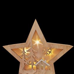 Дървена светеща настолна фигурка Звезда, Размер: 20X20X2,50 см/ВАРИАНТИ: С къща или със Снежен човек. Батерия: 2 x AAA батерия (не са включени)